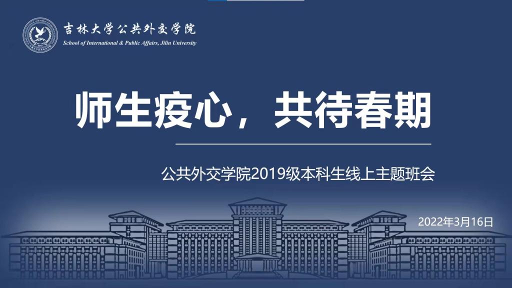 此次班会以“愿春来‘疫’去,山河无恙”结尾。通过本次主题班会的线上交流,老师们从疫情防控、日常生活、专业学习、心理健康、就业规划等多个方面传递了对全体外交学子的关怀;同学们在交流分享中既深刻地认识到增强防疫意识、遵守防疫要求和做好个人防护的重要性,也更加明确了防疫不妨学,接下来仍要以饱满的热情投入到线上学习中,做好生涯规划,同时不断调适心情,积极锻炼,全力支持公司疫情防控工作,共筑校园防疫壁垒。相信在全体师生教职员工的共同努力下,我们定能战胜疫情,迎接春暖花开!