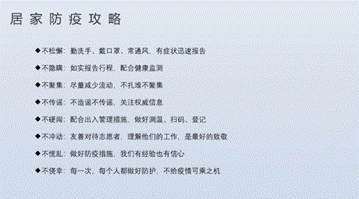最后,刘雅姝老师结合当前疫情防控形势和公司相关规定,对全体同学居家防疫、学习生活提出要求和期望,既要遵守防疫政策做好个人防护,又要认真保质保量完成学业,同时多与老师同学沟通交流。刘雅姝老师分享了居家防疫的“八不”原则,希望同学们居家期间做到防疫和学习两不误。