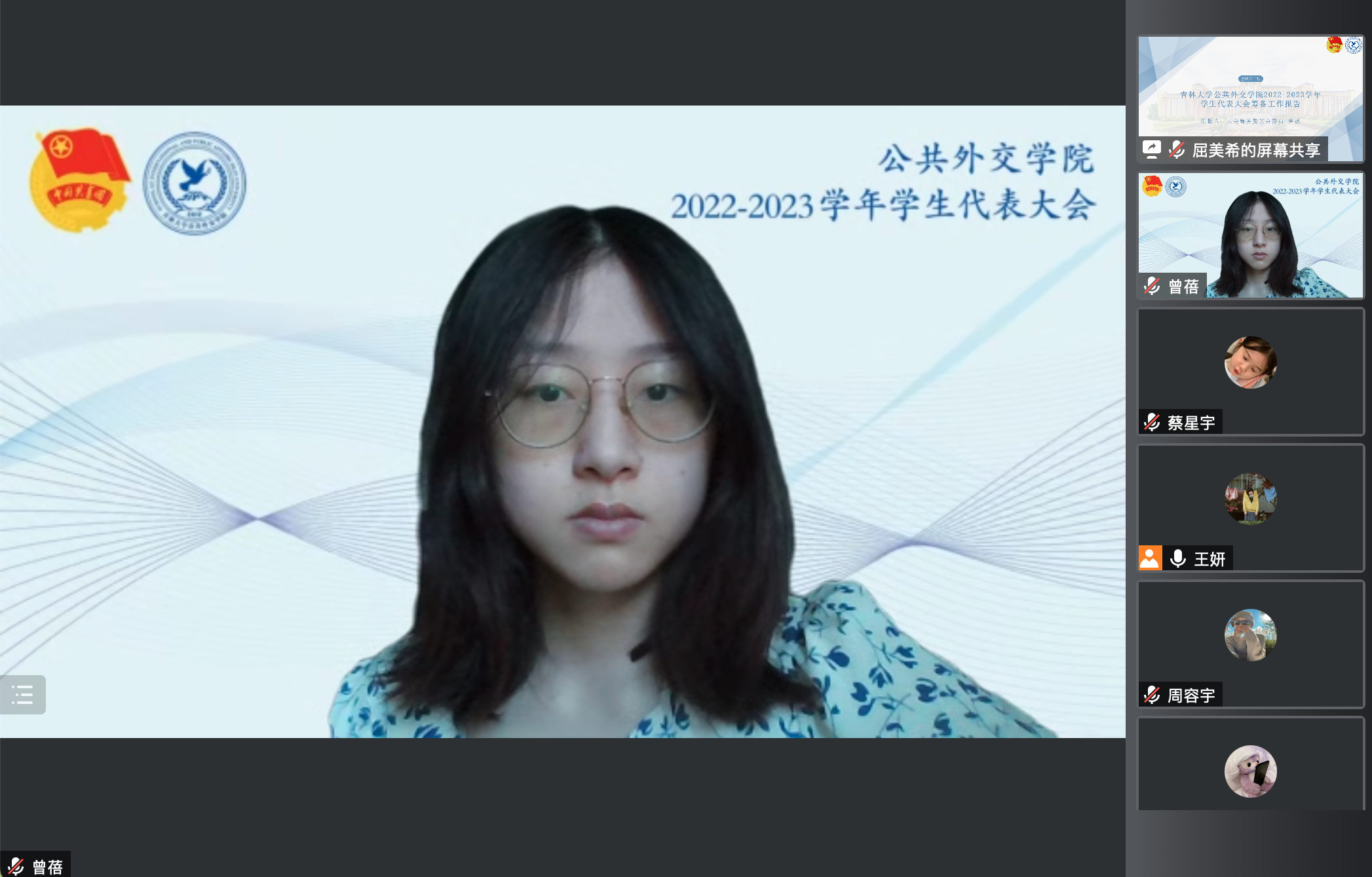 在庄严肃穆的国歌声中,一年一度的员工代表大会隆重拉开帷幕。首先,大会筹备委员会秘书长曾蓓同学作《2022-2023学年员工代表大会筹备工作报告》,围绕筹备委员会的成立、员工代表的选举与工作报告的起草等方面对本次大会筹备工作进行汇报。
