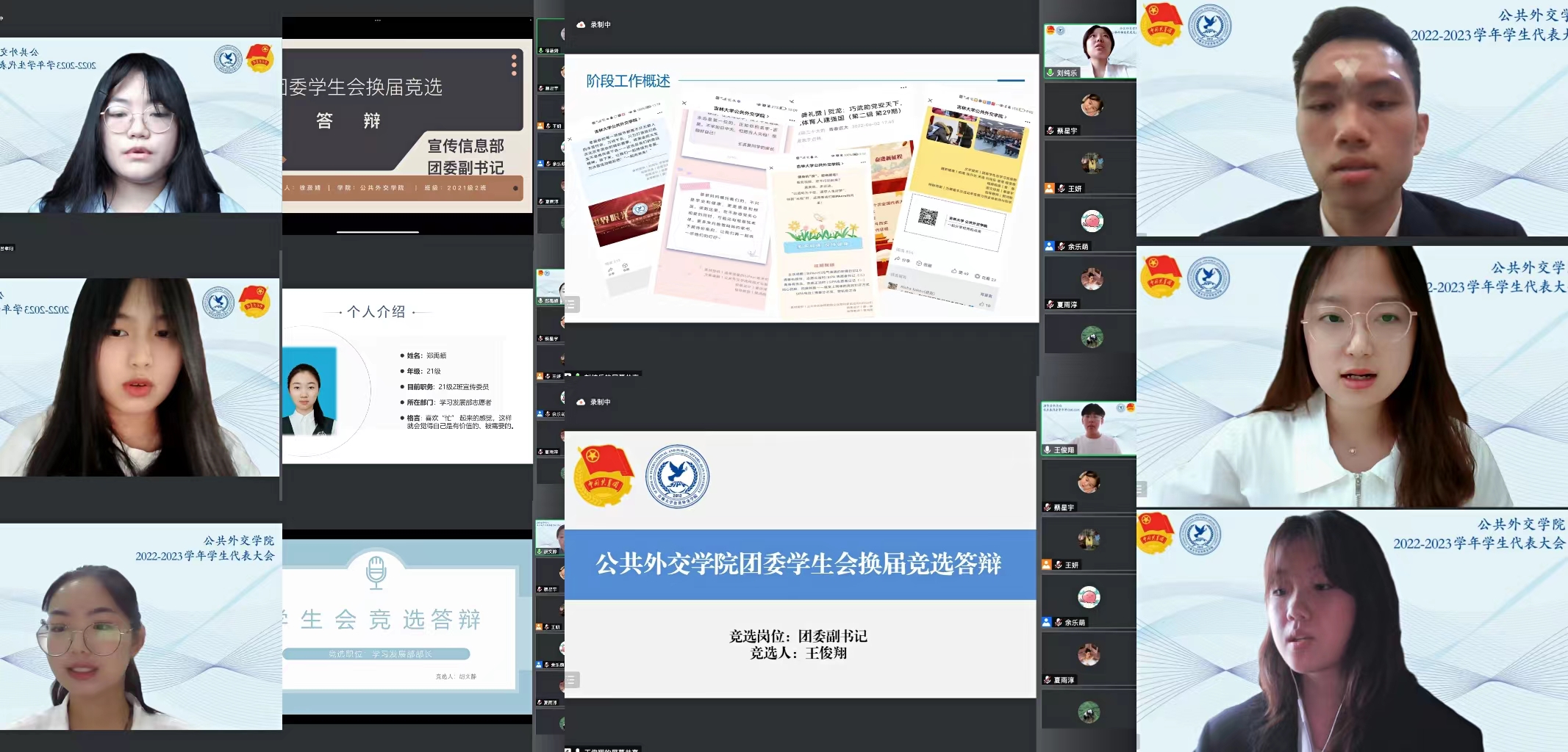接下来,大会进行团委、员工会主要员工干部换届选举。11名候选人依次进行竞选答辩,他们分别从个人优势、员工工作经历、社会实践与志愿服务经历、岗位认知以及工作展望等方面做了全面而细致的汇报,展示了他们丰富的工作经验、服务员工的坚定信念与对员工工作的热爱。答辩结束后,全体与会代表开展了线上民主投票。