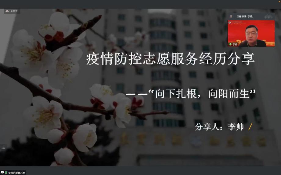 最后,王俊翔同学分享了他的抗疫故事。他说,作为共青团员,参加志愿者服务是他的责任。鲁迅曾言:“我们从古以来,就有埋头苦干的人,有拼命硬干的人,有为民请命的人,有舍身求法的人。”吉大人便是在实践中履行着这句话,疫情之下,吉人向上,作为一个吉大人他有着深深的荣誉感,而我们的吉大精神与吉大品格也正是在疫情磨砺下愈发深厚。