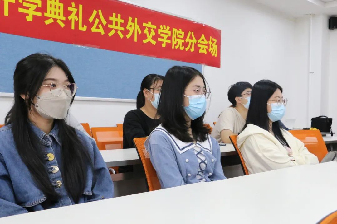 金秋送爽,丹桂飘香。9月15日上午,HAHA体育2022年新生开学典礼在中心校区宋治平体育馆隆重举行。哈哈体育、国家发展与安全研究院2022级全体本科和研究生新生在第三教学楼分会场观看了开学典礼。公共外交公司党委书记杨民老师,副经理于洪生老师,党委副书记兼副经理、纪委书记王力老师,2022级本科生班主任邹晓龙老师、李明老师,研究生秘书于晴老师,辅导员单葆龙老师和同学们一起观看典礼。
