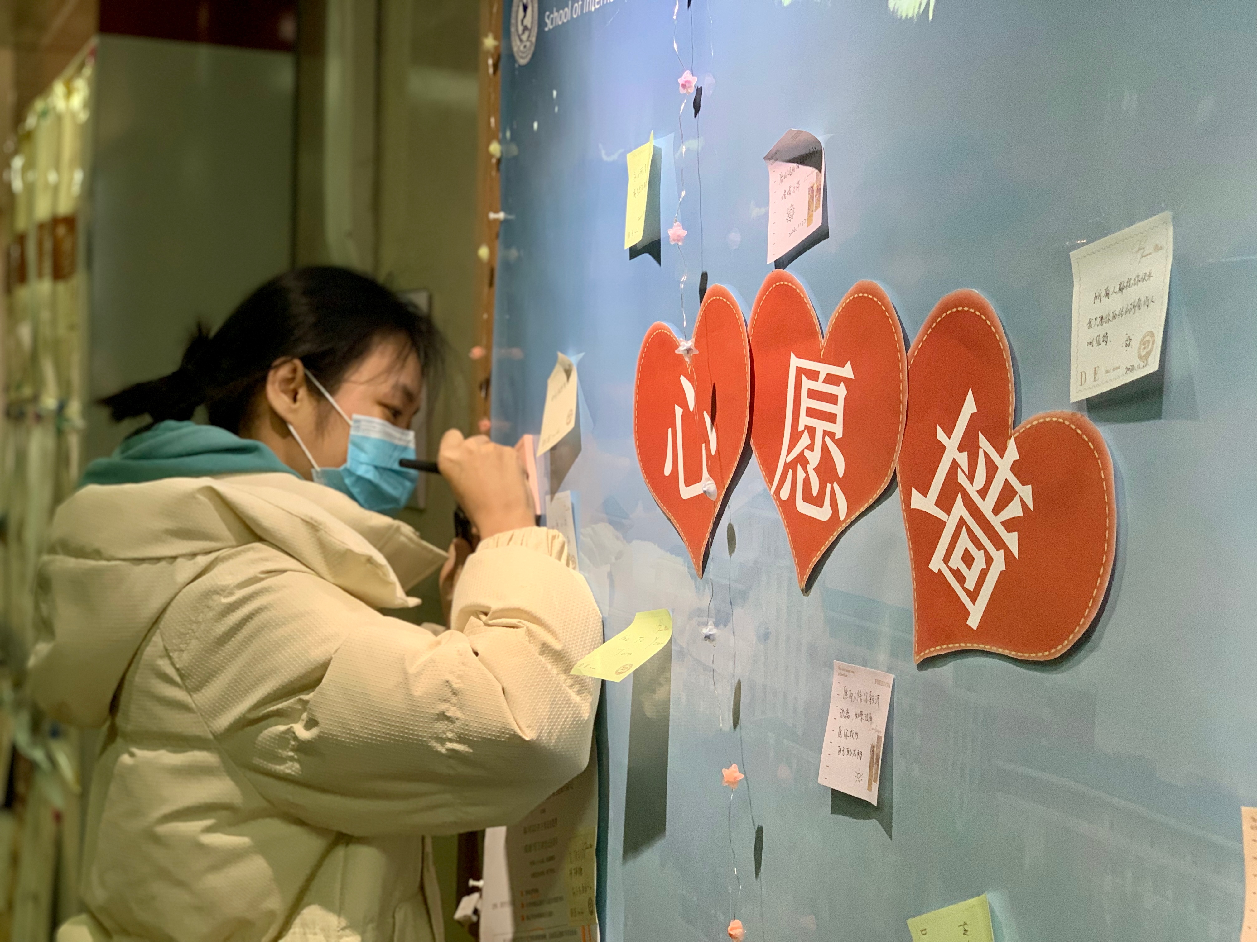 为响应员工心理健康指导中心号召,促进师生间的交流与沟通,缓解身心压力,进一步提高心理素质,增强心理健康意识。11月21日-24日哈哈体育、国家发展与安全研究院于吕振羽楼二楼开展了“心愿心语,来日可期”心愿墙主题成长活动。