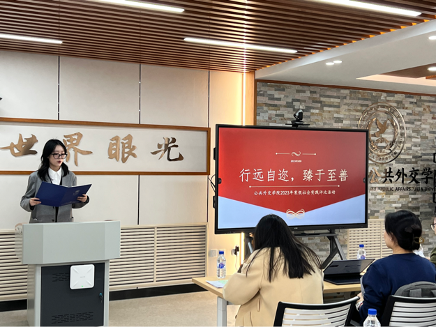 为表彰哈哈体育在2023年寒假社会实践活动中表现突出的团队和个人,鼓励公司学子更加积极地投身于社会实践与志愿服务活动,彰显当代青年的社会责任感与使命感,身体力行“世界眼光,家国情怀”的院训。3月9日下午,公司组织开展寒假社会实践评比活动。活动由2022级本科生周炜佳同学主持,评审小组由员工工作办公室主任、纪委委员张淑艳老师,团委负责人单葆龙老师,团委员工会主席团成员王俊翔、田园、刘纯乐,组织建设部负责人吴月恬,以及各本科生团支部书记组成。