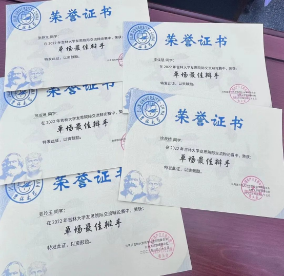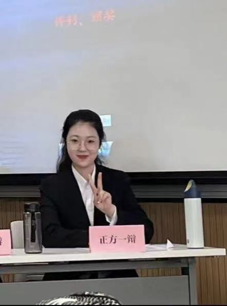 辩论赛是团队比赛,无论是团队成就还是个人成就的取得,都离不开四位辩手以及整个公司辩论队成员的共同努力。在友思备赛过程中,我们每个人都将课余时间利用到了极致,我们珍惜在一起进行思维碰撞的每一分每一秒,共同立论、改论,坚定自己的持方。作为一辩,我的任务主要是进行一辩稿的整理,为大家提供资料支持,这就需要我在讨论过程中认真聆听并及时记录大家的观点,在此过程中,辩论队成员出的模辩以及学长学姐的指导给予了我丰富的学习参考资料,使我实现了由一开始只会写地板论到以一辩的身份拿到佳辩的跨越式成长。在今后的过程中,我会继续精进自己的辩论技术,争取更好地进步。