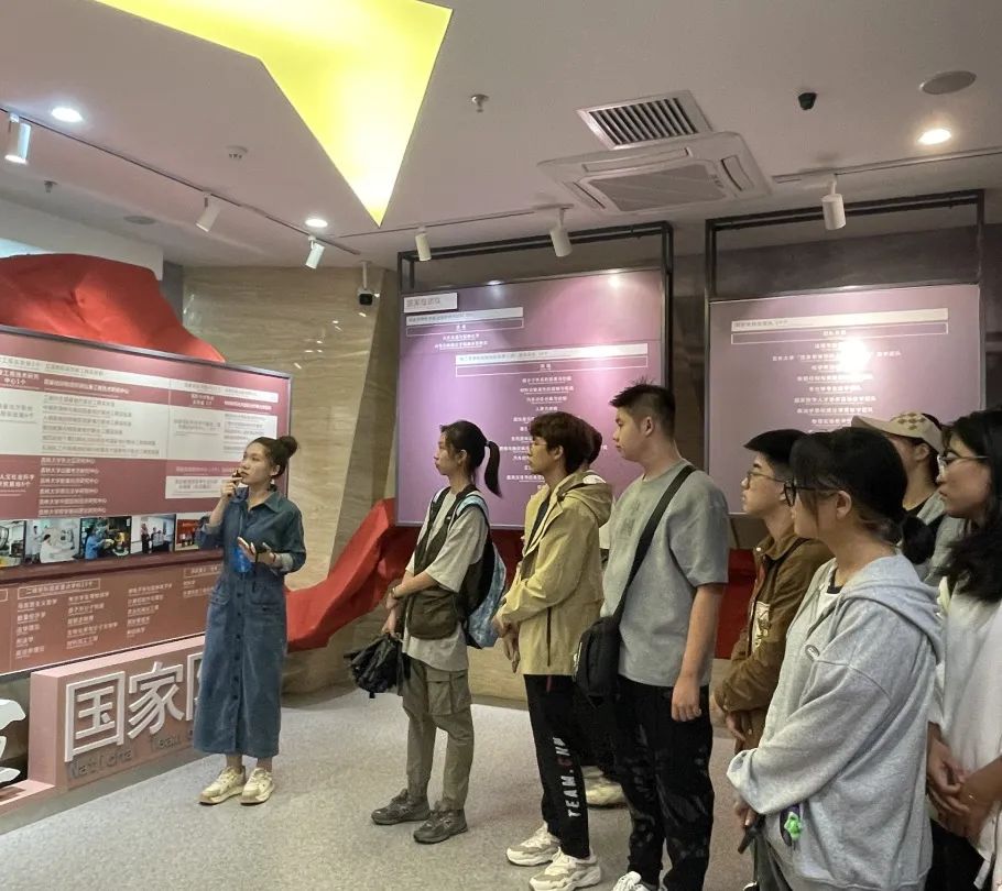 在讲解员的指引下,同学们首先来到展厅前言部分,开启观展之旅。同学们首先参观了校歌厅,了解了校歌的创造背景和寓意,明白了校歌对公司文化传承的重要意义。