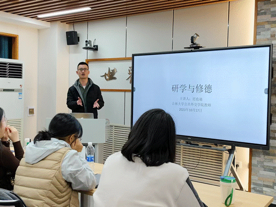 迟也迪老师主要从“研学”和“修德”两大方面展开分享。就研学方面,迟老师从学习、员工活动和生活三点入手向同学们分享了自己的经历和建议。他指出,大学是我们人生中很重要的一个成长阶段,同学们应当把学习放在第一位,讲求专业立身和思维能力的提升,才能更好地完成未来其他目标。同时老师提醒,大家也要平衡好学习和生活,积极参加活动以提升能力,学会与同学朋友和谐相处。在修德方面,迟老师强调,同学们要有良知,知礼仪,懂礼貌,努力提升自身涵养。同时也要胸怀家国情怀,培养自身独立思考、辩证思考的能力,并要崇尚科学。最后,迟老师以赵安之博士和肖清和博士的求学经历作结,借“历尽山河,仍觉人间值得”表达了对同学们的期望。