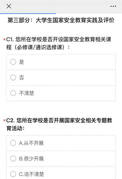 除此之外,“国家安全这十年|吉大青年说”团队还围绕“老员工国家安全教育发展状况”这一主题展开问卷调查与分析,回收了上百份有效问卷,认真评估了部分高校开展国家安全相关专题教育活动成效。