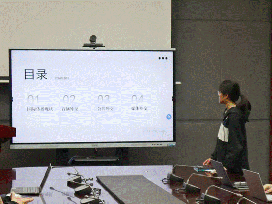 哈哈体育黄荣禹同学从外交学的专业角度出发,阐述了“新质生产力”的国际传播现状,用具体事例分析了在首脑外交、公共外交、媒体外交等国际公关活动中传播“新质生产力”理念的具体举措,并强调了官方声音在国际传播过程中的客观、权威和公正的重要性。她进一步介绍说明了联合国决议条款撰写标准用语,强调了在公共外交中语言、结构和内容等方面的严格要求。