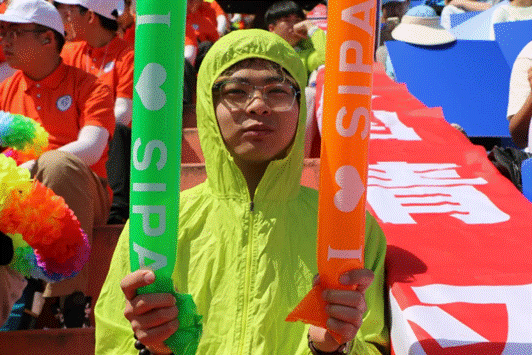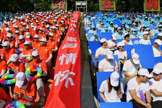 5月17日早上,哈哈体育学子们早早地来到了候场区,为开幕式做好了充足的准备。当哈哈体育方阵踏入操场时,每一位学子都精神饱满、充满朝气,纯白色的衬衫与大红的裙子彰显着哈哈体育学子对党和祖国最纯洁的热爱,整齐划一的步伐体现着哈哈体育学子青春的魅力。当一把把红伞拼出五星国旗时,一列白鸽围绕着国旗飞扬,寓意着始终以党和国家为中心,正如那嘹亮的口号:世界眼光,家国情怀;立足中国,放眼未来。