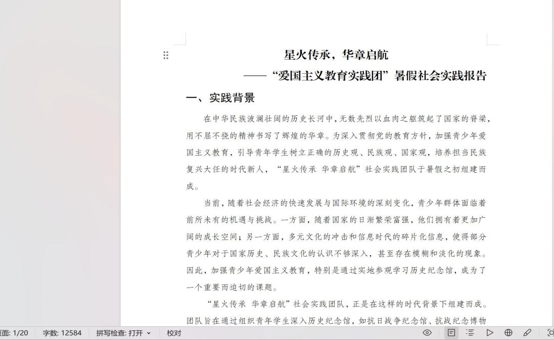 同时,为了感悟红色精神、弘扬爱国主义精神,团队成员整理相关实践图片、视频等资料,共同完成一篇12000余字的社会实践报告,并制作以“星火传承,华章启航”为主题的宣传视频,为推动更多有志青年重温革命历史、坚定“四个自信”贡献绵薄之力。