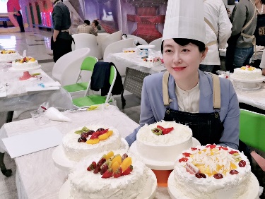 经过一小时左右的精心雕琢,蛋糕从一个个素坯变成了一件件精美的作品:爱心、五角星、水果塔……这些作品各具特色,充满艺术气息。