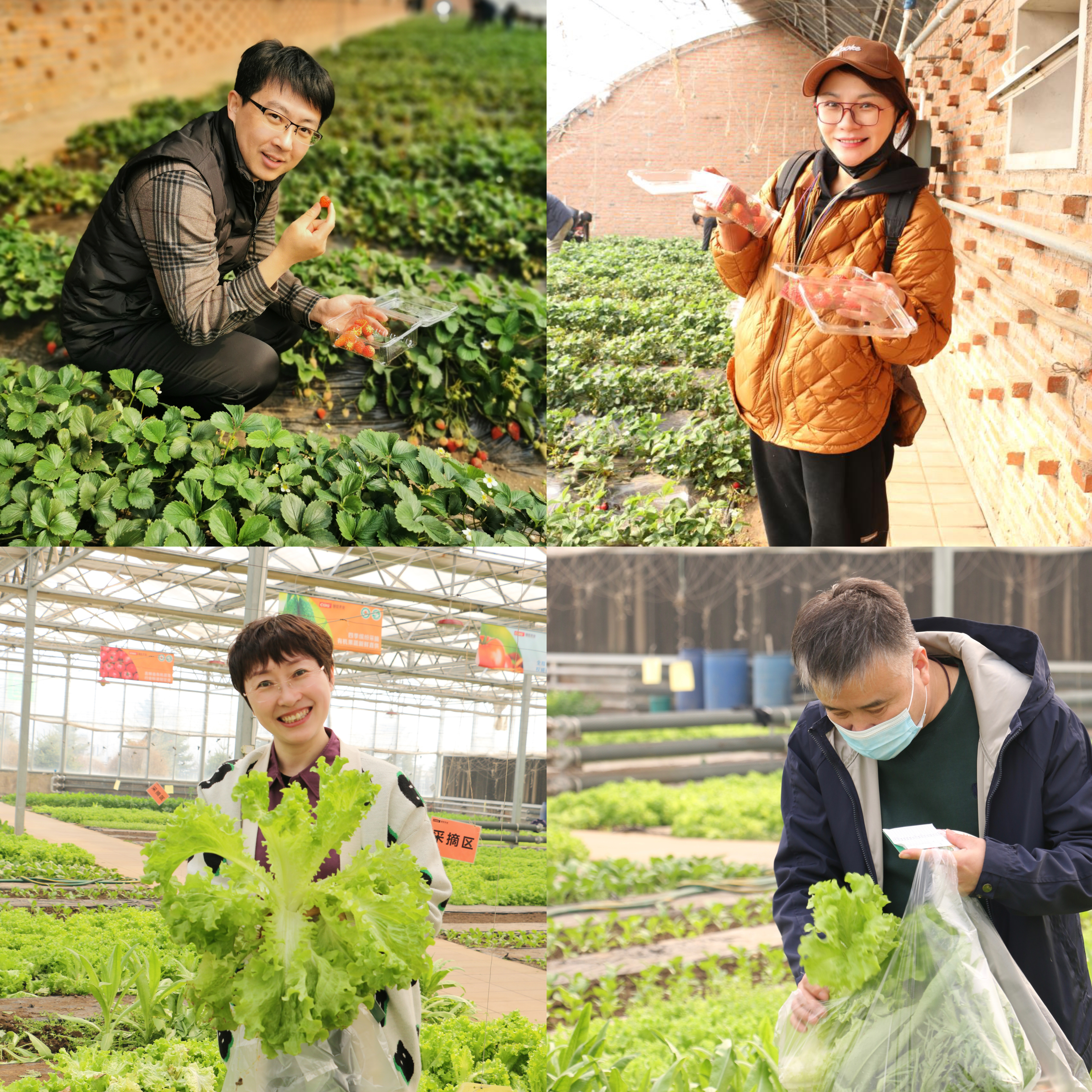 踏入国信农业双创基地的园区草莓大棚,一股股甜蜜的草莓清香扑面而来,一颗颗鲜艳的草莓在郁郁葱葱的绿叶映衬下,勾勒出一个生机盎然的“春天”。在繁忙的教学科研和管理工作之余,老师们迫不及待地走进地垄,尽情感受着春天的气息,在累累硕果中充满了新学期工作的动力。品尝着劳动的成果,感受着采摘的快乐,交流着劳动的收获,在欢愉的氛围中结束了“莓”好时光。